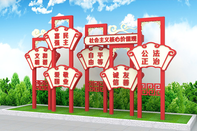 精神堡壘具備一定的體量和高度,能夠獨立表達企業形象的大型單體標識。精神堡壘特指為商業體、主題園區、交通站點等公共場所,樹立醒目且符合場地氣質的藝術構筑物。精神堡壘的擺放的位置也尤其重要,人都有視覺盲點,精神堡壘給人一種清新和諧的感覺。
